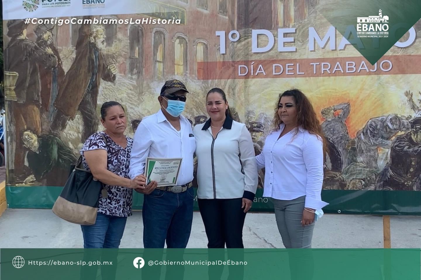 Cuatro trabajadores ejemplares que laboran en diferentes departamentos del H. Ayuntamiento, fueron reconocidos por la alcaldesa María Soledad Carreño Linares, en el marco de la conmemoración internacional del Primero de Mayo o Día del Trabajo.