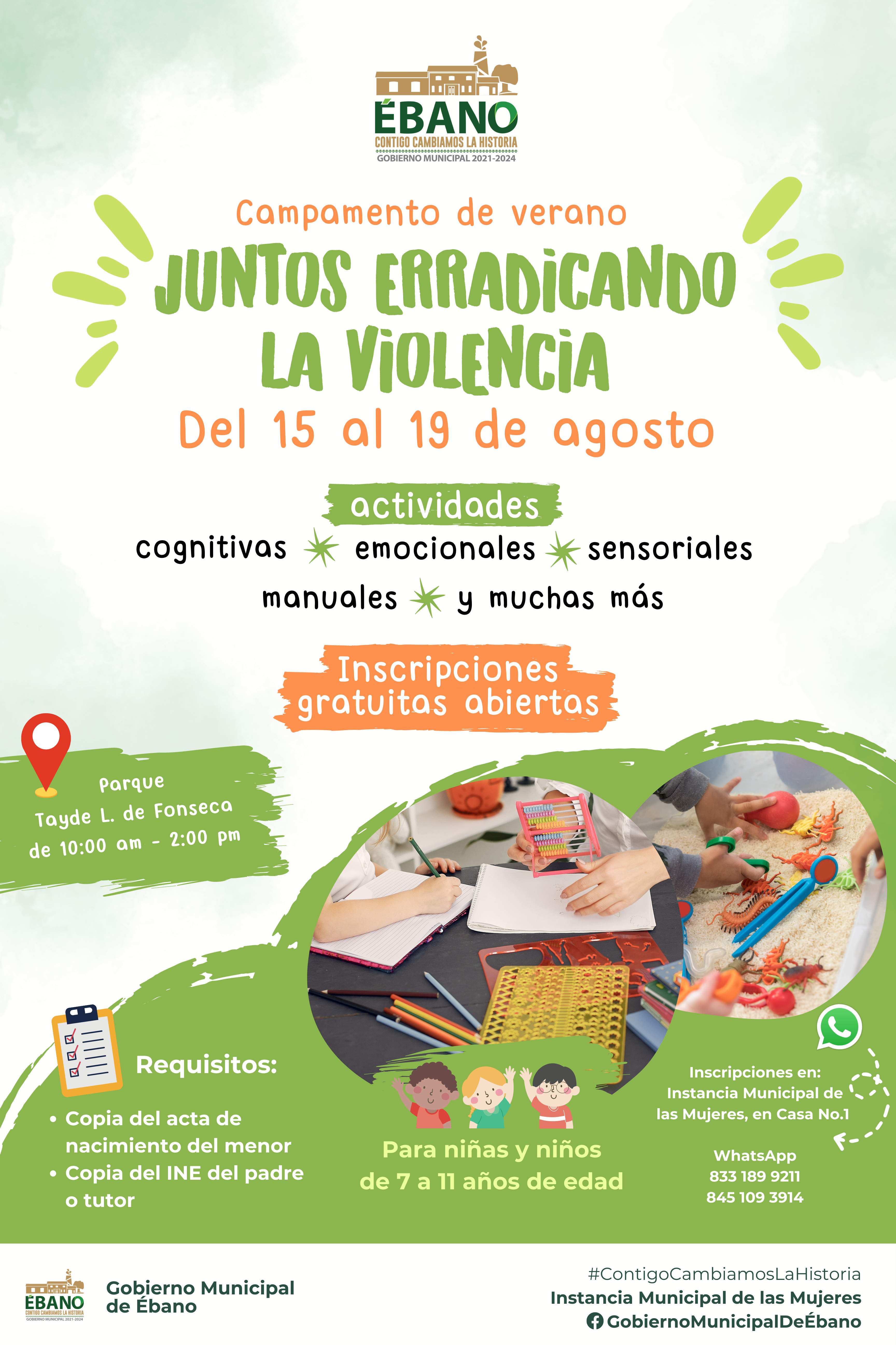 Del 15 al 19 de agosto se realizará el Campamento Naranja “Juntos Erradicando la Violencia”, organizado por la Dirección de Instancia de las Mujeres de este Gobierno Municipal “Contigo Cambiamos la Historia”.