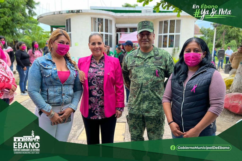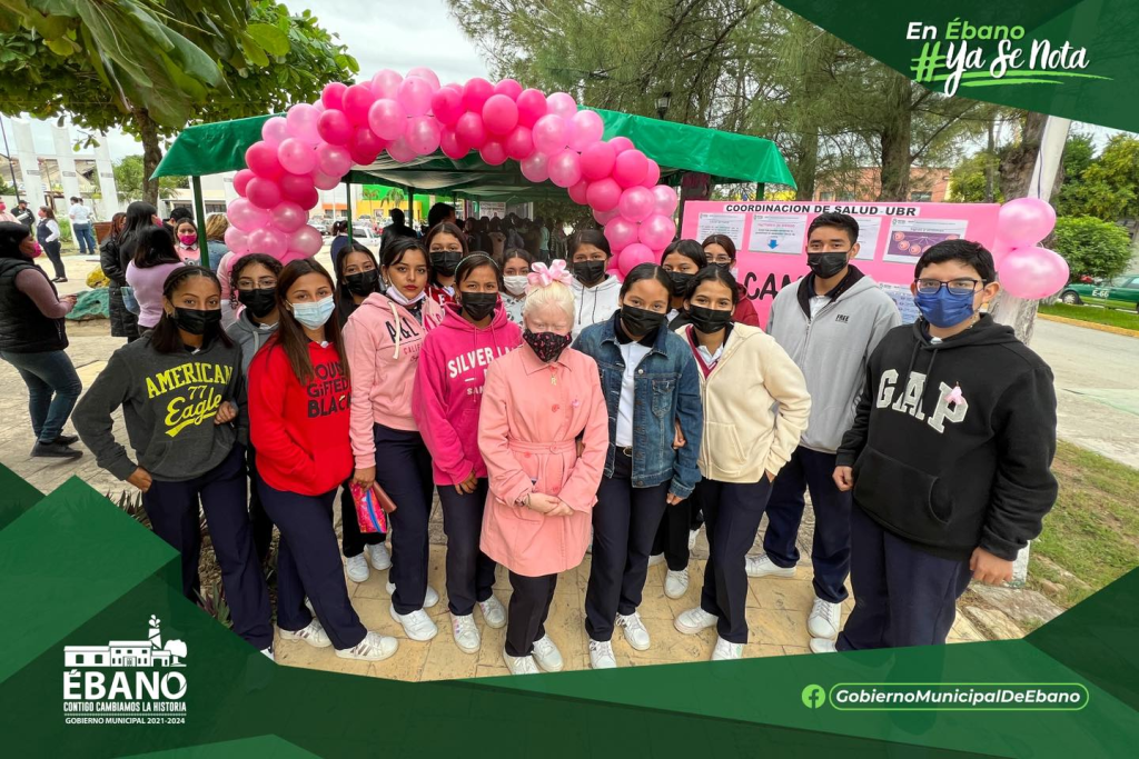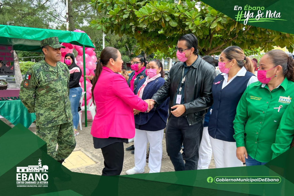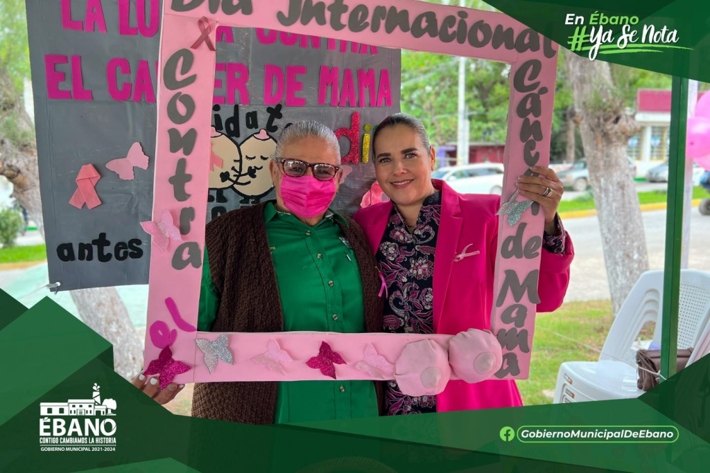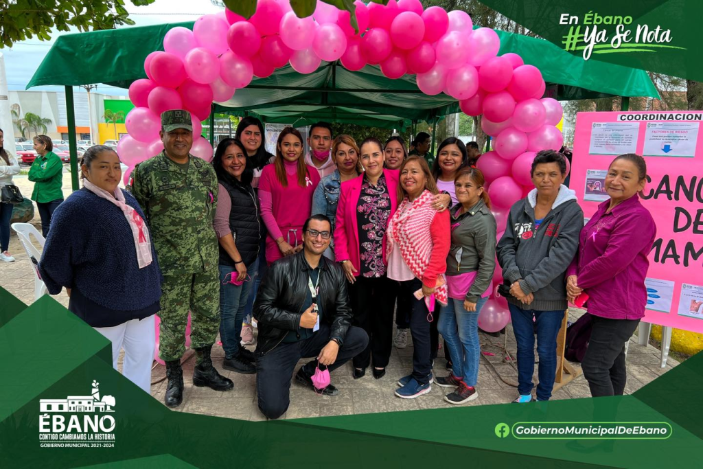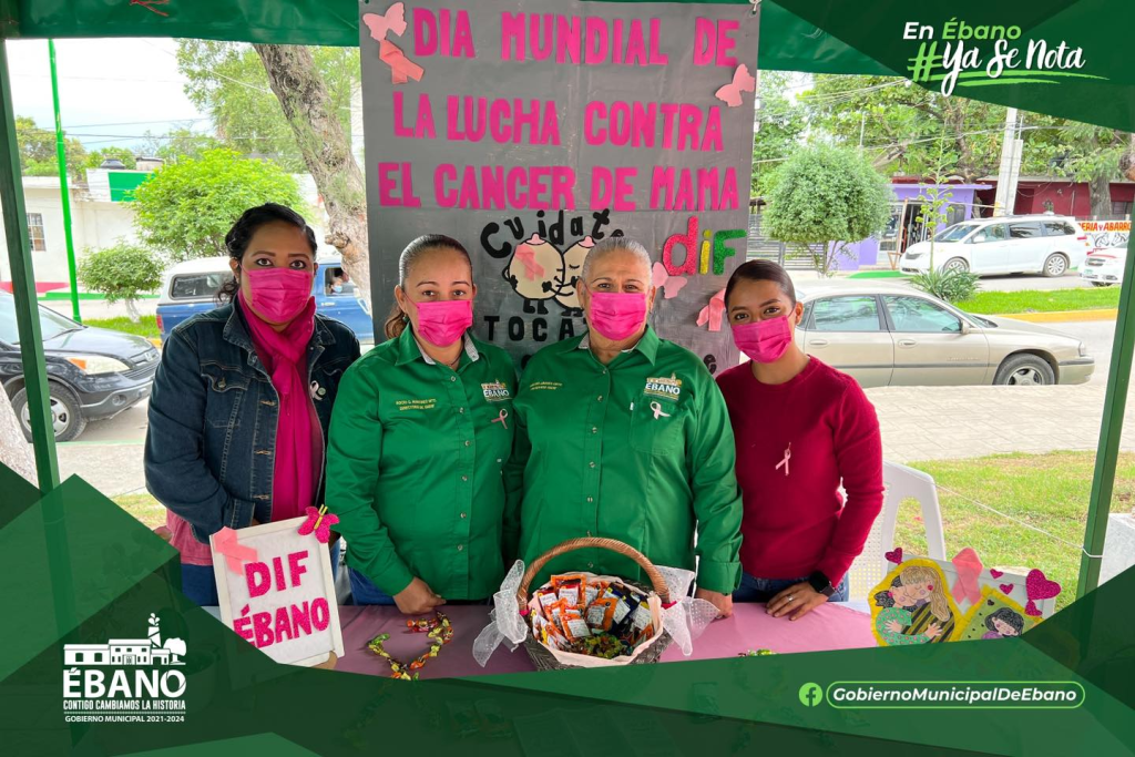 Hoy durante el marco del Día Internacional De Lucha Contra el Cáncer De Mama, el Gobierno Municipal de Ébano que preside nuestra alcaldesa María Soledad Carreño Linares en coordinación con DIF, Instancia Municipal de la Mujer, Coordinación de Salud, Hospital Básico Comunitario de Ébano, UBR, el Centro de Desarrollo para la Mujer, Fomento Deportivo y el Instituto de Capacitación para el Trabajo del Estado realizaron la Feria de la Salud en la Plaza Fundadores de este municipio, con la finalidad de sensibilizar a la población sobre la importancia de la autoexploración para una detección temprana.