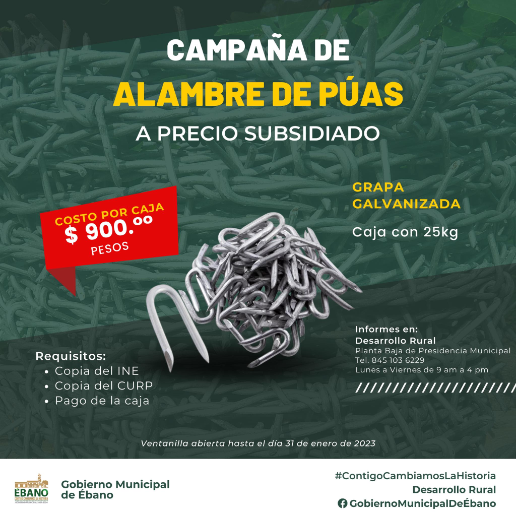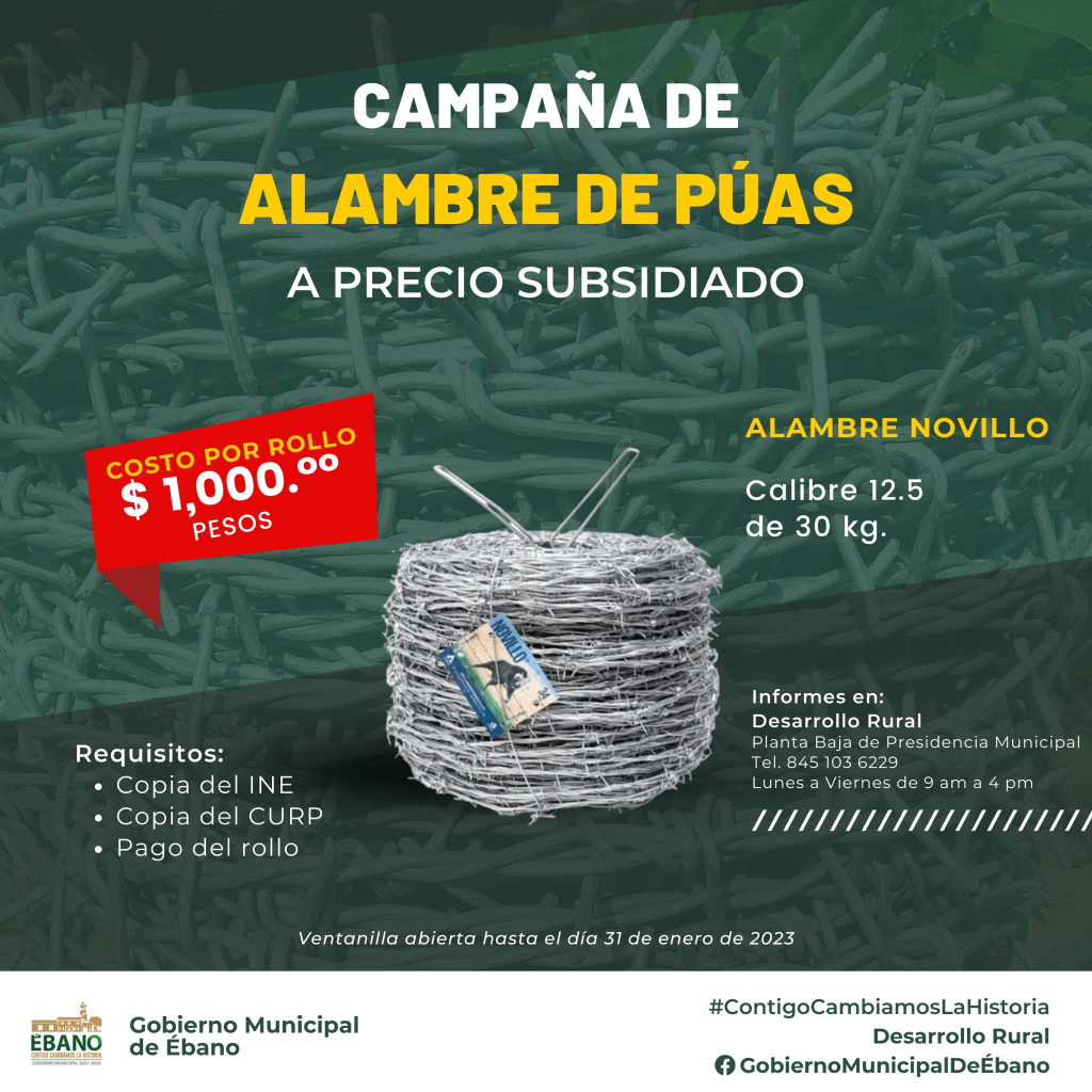 El Gobierno Municipal de Ébano que preside la alcaldesa María Soledad Carreño Linares en coordinación con Desarrollo Rural continúa con ventanilla abierta para la CAMPAÑA DE LÁMINA y ROLLO DE ALAMBRE A BAJO COSTO